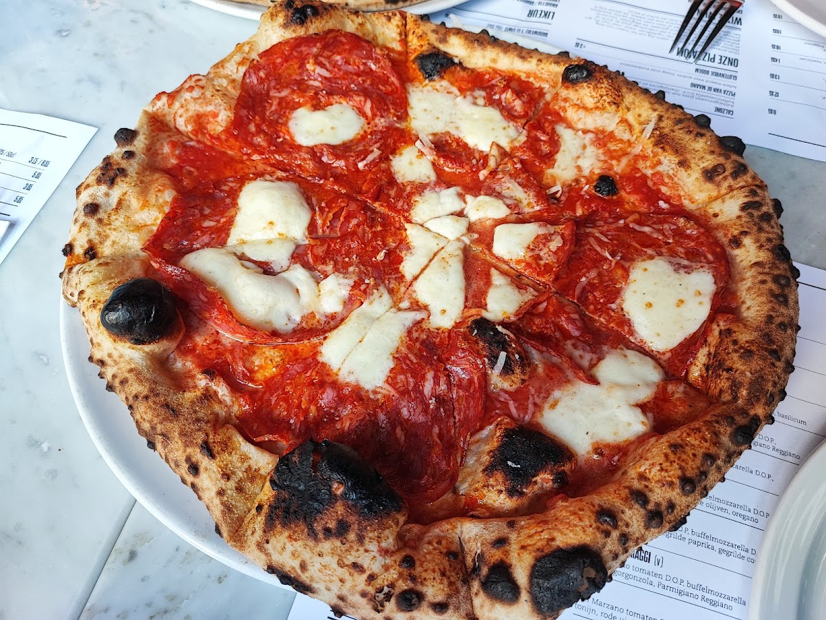 One visit that stuck with me involved sitting near the open kitchen and watching the staff work through a busy dinner rush. The process was calm and methodical: dough balls stretched by hand, toppings added sparingly, pizzas rotated mid-bake for even cooking. That consistency shows in the reviews online, where many diners mention reliable quality even during peak hours. In a city like Amsterdam, where restaurant turnover is high, that kind of consistency builds trust.
